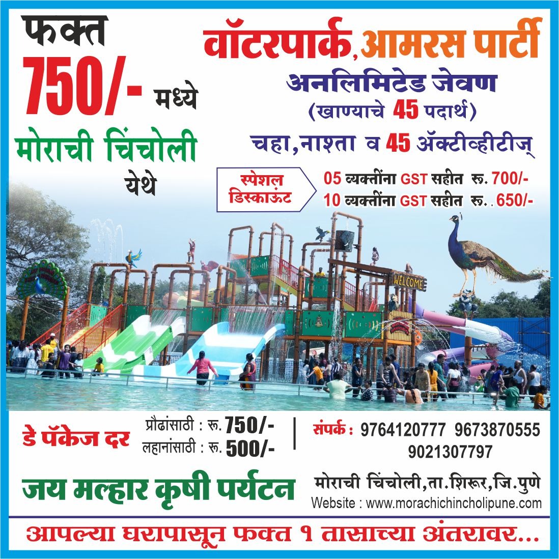 वॉटर पार्क, कृषि पर्यटन ( ४५ ऍक्टिव्हिटी सह आणि राईडस )आमरस पार्टी व 4५ Activities सह